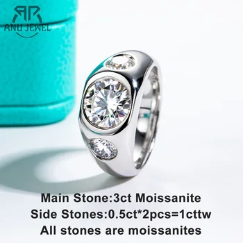 AnuJewel 3cttw D Color Moissanite Men Ring 925 Sterling Silver 18K Gold Plated Engagement Rings For Man&Women Jewelry Wholesale