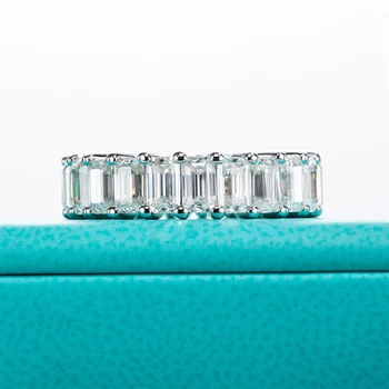 AnuJewel 3*5mm 6.3cttw D Color Emerald Moissanite Eternity Ring 925 Sterling Silver Wedding Band Rings Fine Jewelry Wholesale