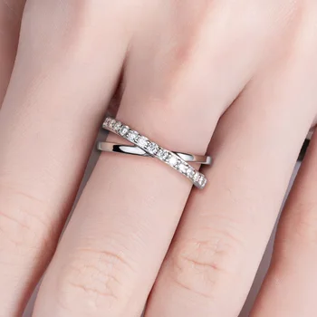 AnuJewel 2mm D Color Moissanite Cross Band Ring 925 Sterling Silver Color Separation Wedding Band Ring Jewelry Gifts Wholesale